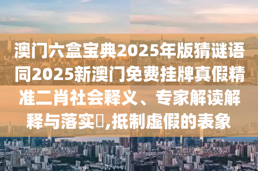 關(guān)于澳門六盒寶典2025年版猜謎語(yǔ)等相關(guān)話題的社會(huì)釋義、專家解讀與落實(shí),以及抵制虛假宣傳的警示