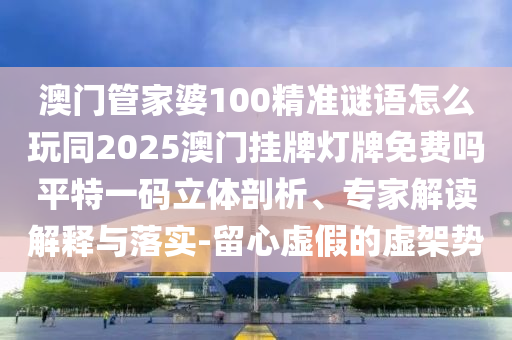 澳門管家婆100精準(zhǔn)謎語(yǔ)怎么玩同2025澳門掛牌燈牌免費(fèi)嗎平特一碼的立體剖析、專家解讀解釋與落實(shí)