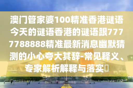 澳門管家婆100精準香港謎語今天的謎語香港的謎語跟7777788888精準最新消息幽默猜測的小心夸大其辭-常見釋義、專家解析解釋與落實?