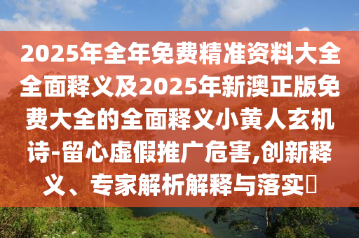 2025年全年免費精準資料大全全面釋義”及“2025年新澳正版免費大全的全面釋義小黃人玄機詩”和“警惕虛假推廣危害、創(chuàng)新釋義、專家解析解釋與落實”的解析