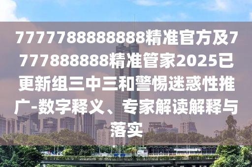 關(guān)于數(shù)字組合“7777788888888精準(zhǔn)官方”及“7777888888精準(zhǔn)管家2025已更新組三中三”的概念,涉及到數(shù)字釋義、專家解讀解釋與落實(shí)等方面,以下是對(duì)這些概念的全面解析,旨在幫助用戶警惕迷惑性推廣。