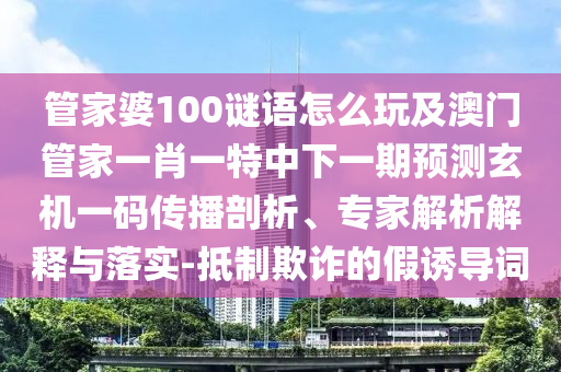 管家婆100謎語(yǔ)怎么玩及澳門管家一肖一特中下一期預(yù)測(cè)玄機(jī)一碼的傳播剖析、專家解析解釋與落實(shí)