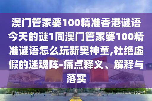 澳門管家婆100精準香港謎語今天的謎1,以及與之相關的澳門管家婆和新奧神童概念,近期在網絡上引起了廣泛的關注與討論,許多用戶對這些概念存在誤解和困惑,因此本文旨在從痛點釋義、解釋與落實的角度,全面闡述這些概念,幫助用戶避免陷入虛假的迷魂陣。