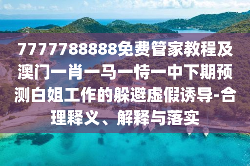 關(guān)于7777788888免費(fèi)管家教程及澳門一肖一馬一恃一中下期預(yù)測(cè)白姐工作的概念,涉及到多個(gè)方面,包括數(shù)字、免費(fèi)教程、預(yù)測(cè)工作等,以下是對(duì)這些概念的合理釋義、解釋與落實(shí),以及如何躲避虛假誘導(dǎo)的說(shuō)明。