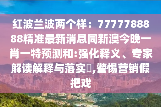 紅波蘭波兩個(gè)樣:7777788888精準(zhǔn)最新消息同新澳今晚一肖一特預(yù)測和:強(qiáng)化釋義、專家解讀解釋與落實(shí)?,警惕營銷假把戲