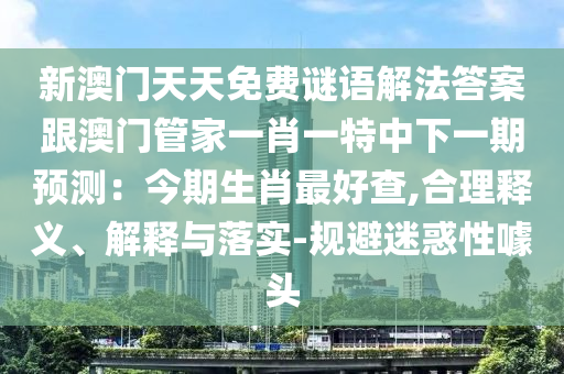 關(guān)于新澳門天天免費(fèi)謎語(yǔ)解法答案、澳門管家一肖一特中下一期預(yù)測(cè)、今期生肖最好查等相關(guān)內(nèi)容的全面釋義、解釋與落實(shí),并提醒公眾警惕虛假宣傳