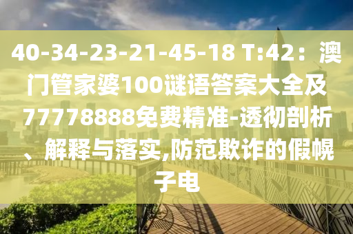 40-34-23-21-45-18 T:42:澳門管家婆100謎語答案大全及77778888免費(fèi)精準(zhǔn)-透徹剖析、解釋與落實(shí),防范欺詐的假幌子電