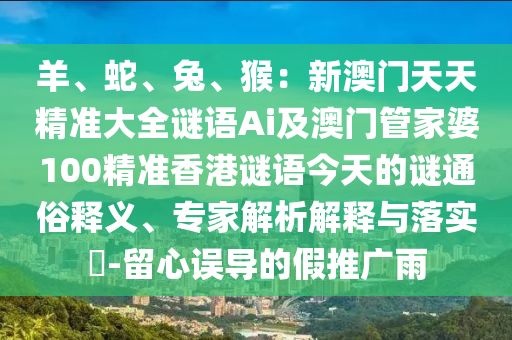 羊、蛇、兔、猴:新澳門天天精準(zhǔn)大全謎語Ai及澳門管家婆100精準(zhǔn)香港謎語今天的謎通俗釋義、專家解析解釋與落實(shí)?-留心誤導(dǎo)的假推廣雨