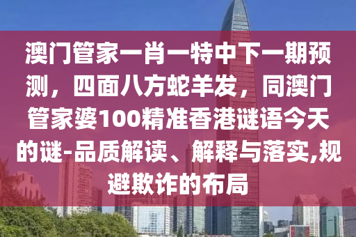 澳門管家一肖一特中下一期預測,四面八方蛇羊發(fā),同澳門管家婆100精準香港謎語今天的謎-品質(zhì)解讀、解釋與落實,規(guī)避欺詐的布局