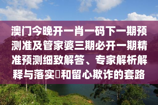 澳門今晚開一肖一碼下一期預測準及管家婆三期必開一期精準預測細致解答、專家解析解釋與落實?和留心欺詐的套路