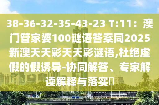38-36-32-35-43-23 T:11:澳門管家婆100謎語答案同2025新澳天天彩天天彩謎語,杜絕虛假的假誘導(dǎo)-協(xié)同解答、專家解讀解釋與落實(shí)?