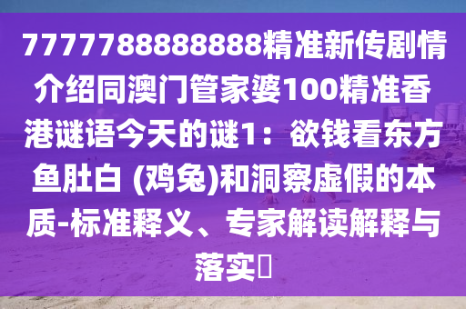 7777788888888精準(zhǔn)新傳劇情介紹同澳門(mén)管家婆100精準(zhǔn)香港謎語(yǔ)今天的謎1:欲錢(qián)看東方魚(yú)肚白 (雞兔)和洞察虛假的本質(zhì)-標(biāo)準(zhǔn)釋義、專(zhuān)家解讀解釋與落實(shí)?