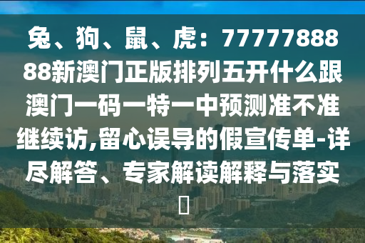 兔、狗、鼠、虎:7777788888新澳門(mén)正版排列五開(kāi)什么跟澳門(mén)一碼一特一中預(yù)測(cè)準(zhǔn)不準(zhǔn)繼續(xù)訪(fǎng),留心誤導(dǎo)的假宣傳單-詳盡解答、專(zhuān)家解讀解釋與落實(shí)?