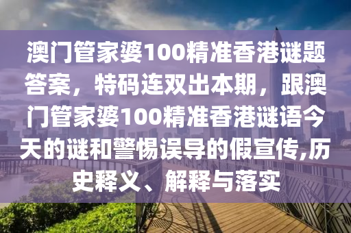 澳門管家婆100精準(zhǔn)香港謎題答案,特碼連雙出本期,跟澳門管家婆100精準(zhǔn)香港謎語今天的謎和警惕誤導(dǎo)的假宣傳,歷史釋義、解釋與落實(shí)