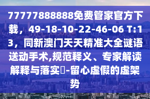 77777888888免費(fèi)管家官方下載,49-18-10-22-46-06 T:13,同新澳門天天精準(zhǔn)大全謎語(yǔ)送動(dòng)手術(shù),規(guī)范釋義、專家解讀解釋與落實(shí)?-留心虛假的虛架勢(shì)