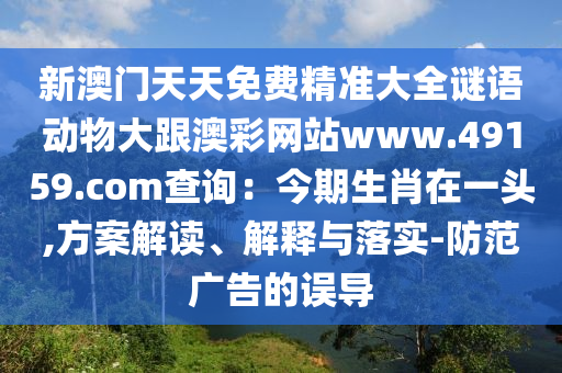 新澳門天天免費(fèi)精準(zhǔn)大全謎語(yǔ)動(dòng)物大跟澳彩網(wǎng)站www.49159.соm查詢:今期生肖在一頭,方案解讀、解釋與落實(shí)-防范廣告的誤導(dǎo)