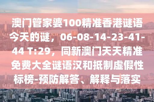 澳門管家婆100精準香港謎語今天的謎,06-08-14-23-41-44 T:29,同新澳門天天精準免費大全謎語漢和抵制虛假性標榜-預防解答、解釋與落實