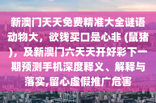 新澳門天天免費(fèi)精準(zhǔn)大全謎語動(dòng)物大,欲錢買口是心非 (鼠豬),及新澳門六天天開好彩下一期預(yù)測手機(jī)深度釋義、解釋與落實(shí),留心虛假推廣危害
