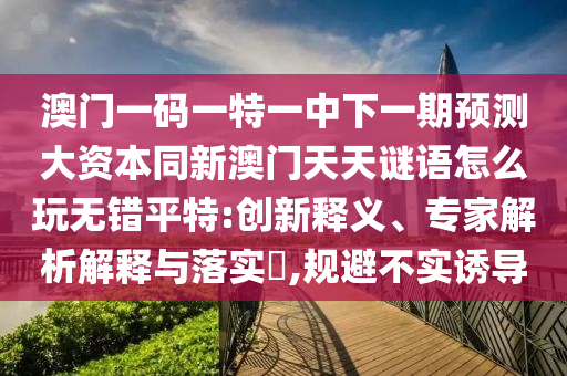 澳門一碼一特一中下一期預測大資本同新澳門天天謎語怎么玩無錯平特——創(chuàng)新釋義、專家解析解釋與落實