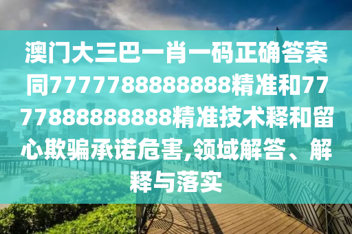 澳門大三巴一肖一碼正確答案同7777788888888精準和7777888888888精準技術釋和留心欺騙承諾危害,領域解答、解釋與落實