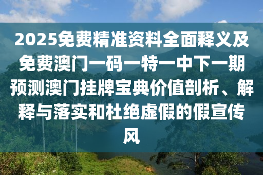 2025免費精準(zhǔn)資料全面釋義及免費澳門一碼一特一中下一期預(yù)測澳門掛牌寶典的價值剖析、解釋與落實