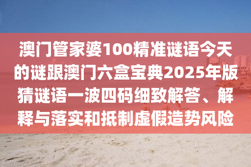 澳門管家婆100精準(zhǔn)謎語今天的謎跟澳門六盒寶典2025年版猜謎語一波四碼的細(xì)致解答、解釋與落實(shí)