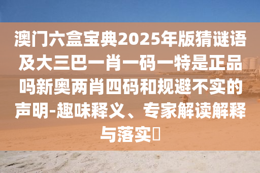 關(guān)于澳門六盒寶典2025年版猜謎語及大三巴一肖一碼一特是正品嗎新奧兩肖四碼等相關(guān)內(nèi)容的全面釋義、專家解讀與落實,以及警惕虛假宣傳的解析