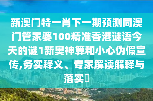 新澳門特一肖下一期預(yù)測同澳門管家婆100精準(zhǔn)香港謎語今天的謎1新奧神算和小心偽假宣傳,務(wù)實(shí)釋義、專家解讀解釋與落實(shí)?
