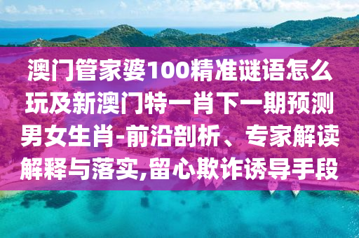 澳門(mén)管家婆100精準(zhǔn)謎語(yǔ)怎么玩及新澳門(mén)特一肖下一期預(yù)測(cè)男女生肖:前沿剖析、專(zhuān)家解讀解釋與落實(shí)