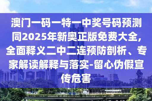 澳門一碼一特一中獎號碼預測、新奧正版免費大全與二中二連的概念解析及預防偽假宣傳危害