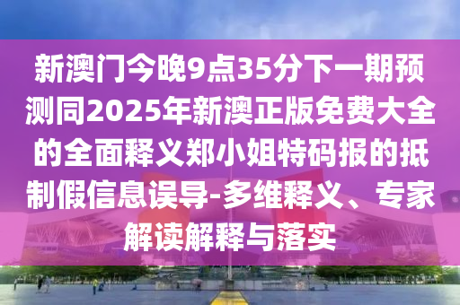關(guān)于新澳門今晚9點(diǎn)35分下一期預(yù)測(cè)與2025年新澳正版免費(fèi)大全的全面釋義鄭小姐特碼報(bào),這是一個(gè)涉及多個(gè)復(fù)雜概念和術(shù)語(yǔ)的話題,為了幫助您理解并抵制假信息的誤導(dǎo),我們將從多維釋義、專家解讀解釋與落實(shí)等方面展開(kāi)詳細(xì)描述。