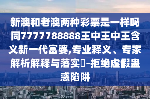 關(guān)于新澳和老澳彩票是否一樣,以及“7777788888王中王中王”的含義,還有新一代富婆的特點(diǎn)和如何拒絕虛假蠱惑陷阱等相關(guān)內(nèi)容,下面將進(jìn)行全面釋義、解釋與落實(shí)。