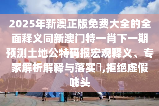 2025年新澳正版免費(fèi)大全的全面釋義同新澳門特一肖下一期預(yù)測土地公特碼報(bào)宏觀釋義、專家解析解釋與落實(shí)?,拒絕虛假噱頭