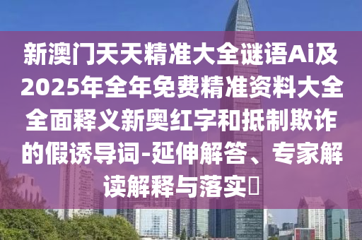對于新澳門天天精準(zhǔn)大全謎語Ai及2025年全年免費(fèi)精準(zhǔn)資料大全等概念,我們需要全面理解其含義,通過專家解讀并落實(shí)到實(shí)際操作中,我們也需要保持警惕,識別虛假宣傳和欺詐行為中的假誘導(dǎo)詞,以保護(hù)自己的權(quán)益。