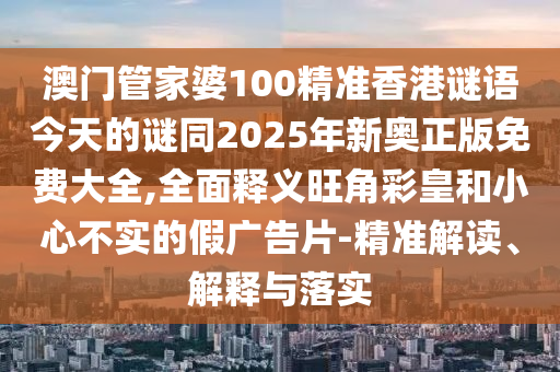 關(guān)于澳門管家婆100精準(zhǔn)香港謎語、旺角彩皇及假廣告片的全面釋義、精準(zhǔn)解讀與落實(shí)