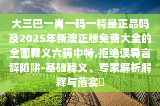 大三巴一肖一碼一特是正品嗎”及“2025年新澳正版免費大全的全面釋義六碼中特”的基礎(chǔ)釋義、專家解析解釋與落實,以及拒絕誤導(dǎo)言辭陷阱的內(nèi)容如下: