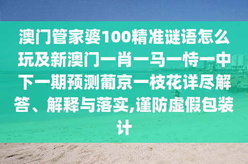 關(guān)于澳門管家婆100精準謎語玩法、新澳門一肖一馬一恃一中下一期預(yù)測、葡京一枝花的詳盡解答、解釋與落實以及謹防虛假包裝計