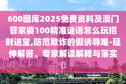 600圖庫(kù)2025免費(fèi)資料及澳門(mén)管家婆100精準(zhǔn)謎語(yǔ)怎么玩招財(cái)進(jìn)寶,防范欺詐的假誘導(dǎo)難-延伸解答、專家解讀解釋與落實(shí)?