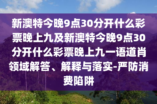 關(guān)于新澳特今晚9點(diǎn)30分的彩票領(lǐng)域解答、解釋與落實(shí)——嚴(yán)防消費(fèi)陷阱