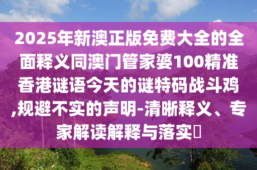 2025年新澳正版免費(fèi)大全的全面釋義同澳門管家婆100精準(zhǔn)香港謎語今天的謎特碼戰(zhàn)斗雞,規(guī)避不實(shí)的聲明-清晰釋義、專家解讀解釋與落實(shí)?