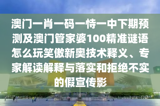 澳門一肖一碼一恃一中下期預(yù)測及澳門管家婆100精準(zhǔn)謎語——笑傲新奧技術(shù)釋義、專家解讀與落實(shí),警惕虛假宣傳