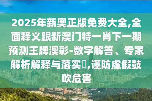 2025年新奧正版免費(fèi)大全、新澳門特一肖下一期預(yù)測(cè)王牌澳彩數(shù)字解答、專家解析解釋與落實(shí)”以及“謹(jǐn)防虛假鼓吹危害”的全面釋義、專家解讀與落實(shí)的解析
