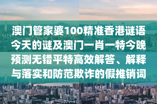 澳門管家婆100精準香港謎語今天的謎及澳門一肖一特今晚預測無錯平特高效解答、解釋與落實和防范欺詐的假推銷詞